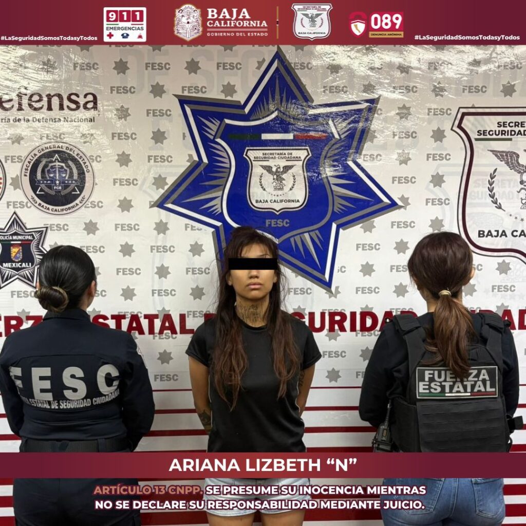 En otro operativo, la FESC detuvo a Ariana Lizbeth, de 21 años, durante la mañana del lunes 13 de abril en la calle Puerto Plata entre las calles Novena y Pescador en Mexicali. La joven contaba con una orden de aprehensión activa por el presunto delito de abuso sexual agravado contra un menor de 14 años de edad. La denuncia por el delito data del año 2024.