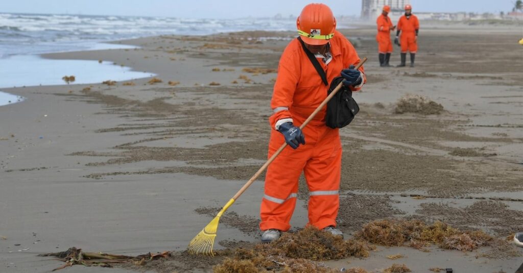 De las 48 playas afectadas, 32 ya no presentan arribazón y 16 siguen con afectaciones. Las labores abarcan 630 kilómetros de litoral, principalmente en Veracruz y Tabasco, donde se instalaron 2,000 metros de barreras de contención.